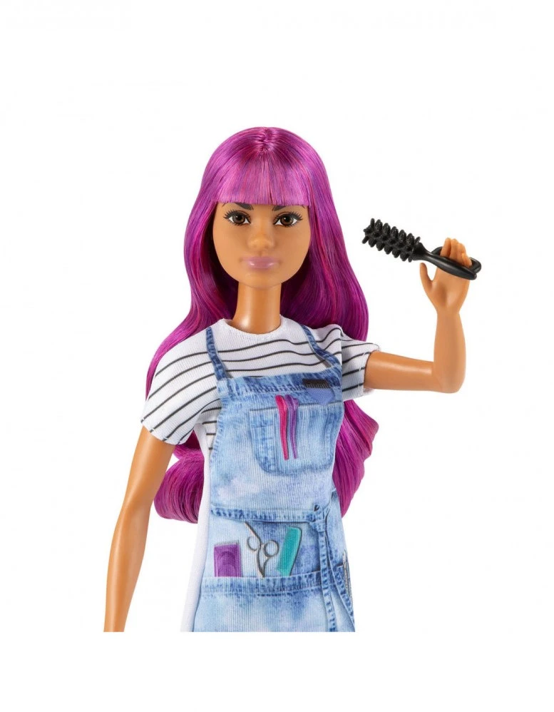 Barbie GTW36 – Haartylistin-Puppe (ca. 30 cm), lila Haare, Zubehör, tolles Geschenk für Kinder ab 3 Jahren