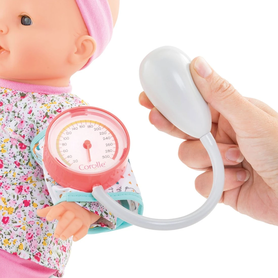 Corolle 9000141050 Mon Grand Poupon 36-42cm großes Doktorset / 7 Teile / mit Blutdruckmessgerät / Spritze und Stethoskop mit Funktion / für alle 36-42cm Puppen / Für Kinder ab 2 Jahren geeignet
