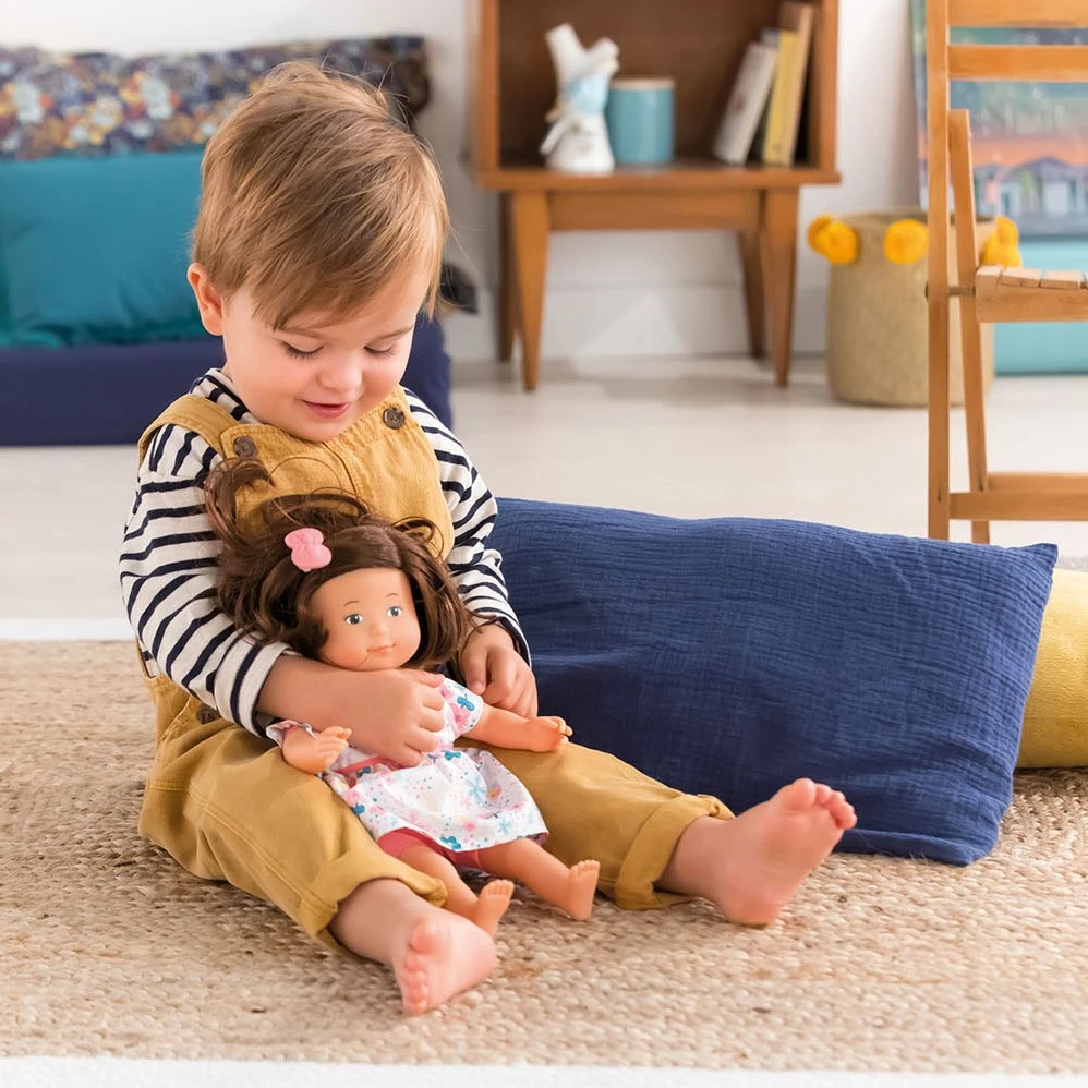Corolle 9000260030 Mon Premier Poupon Florolle Eglantine / Weichkörperpuppe Mit Braunen Haaren / Haargummi Und Blumenkleid / Vanilleduft / 32cm / Für Kinder Ab 18 Monaten Geeignet