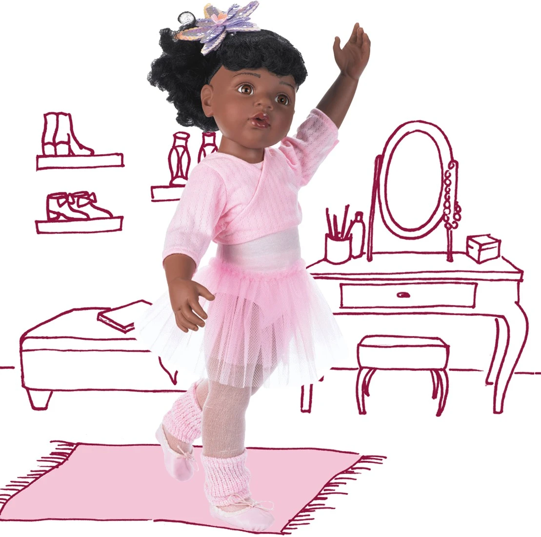 Götz 1159850 Hannah Beim Ballett Afro Puppe – 50 Cm Große Ballerina Stehpuppe, Schwarze Haare, Braune Augen