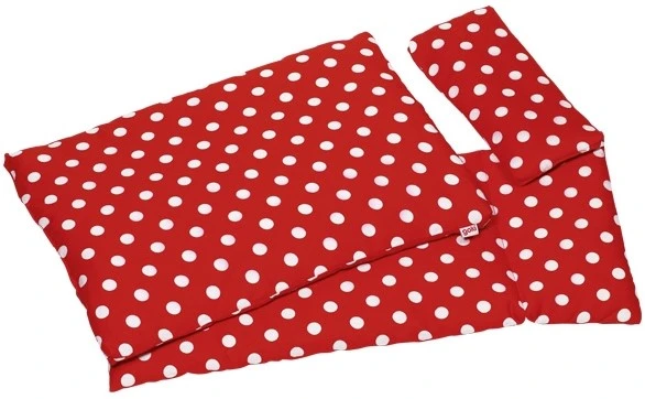 Das fröhlich-bunte Puppenbettzeug passt in alle Puppenbetten und -wiegen. Kopfkissen 22 x 10 cm, Oberbett 41 x 31 cm, Unterbett 54 x 25 cm