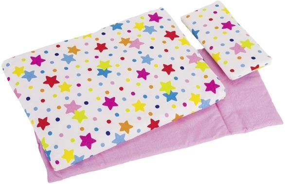 Hochwertiges 3-teiliges Puppenbettzeug aus Baumwollstoff, gefüttert. Das farbenprächtige Sterndesign sorgt für einen festen Puppenschlaf und verschönert darüber hinaus jedes Kinderzimmer.