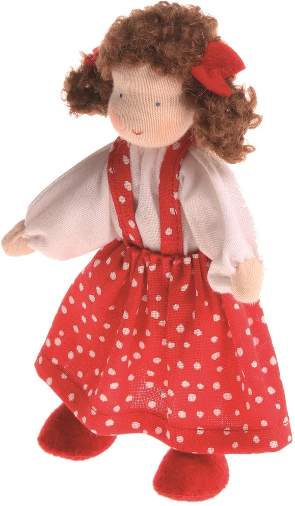 Dieses freche Mädchen liebt seine große Familie: Mama 20050/Papa 20060/kleines Geschwisterchen 20055/Bruder 20080. Unsere Püppchen werden in Europa in traditioneller Handarbeit gefertigt. Die ausgesprochen liebevollen Gesichter werden ebenfalls von Hand gemalt, wodurch jedes Püppchen einen einzigartigen Ausdruck erhält. Es werden ausschließlich zertifizierte Stoffe nach Oeko-Tex Standard 100 verwendet. Stoffe: Baumwollstoff, gefüllt mit weicher Polyesterwolle. Durch einen eingenähten Draht können Arme und Beine bewegt werden. Maße: Größe 12,5cm. Sollten Sie die Püppchen waschen müssen: Unsere Püppchen bevorzugen schonende Handwäsche. Das Gesichtchen bitte nur vorsichtig waschen. Die Farben vom Gesicht sind wasserfest, sie können aber sehr nachlassen wenn beim Waschen gerieben wird und auch der Stoff kann aufgerieben werden.