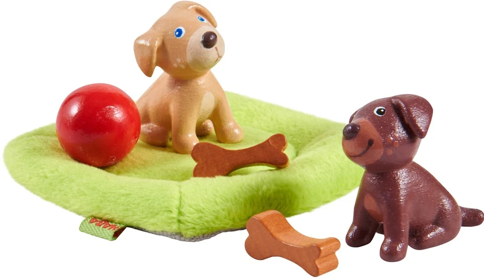 - groĂźer SpielspaĂź mit 2 Hundebabys, 1 Hundekissen, 2 Knochen und 1 Ball