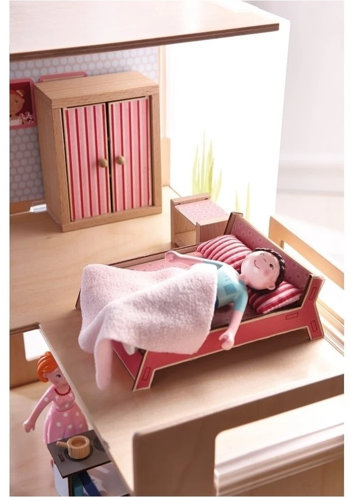 HABA Little Friends – Puppenhaus-Möbel Schlafzimmer für Erwachsene.