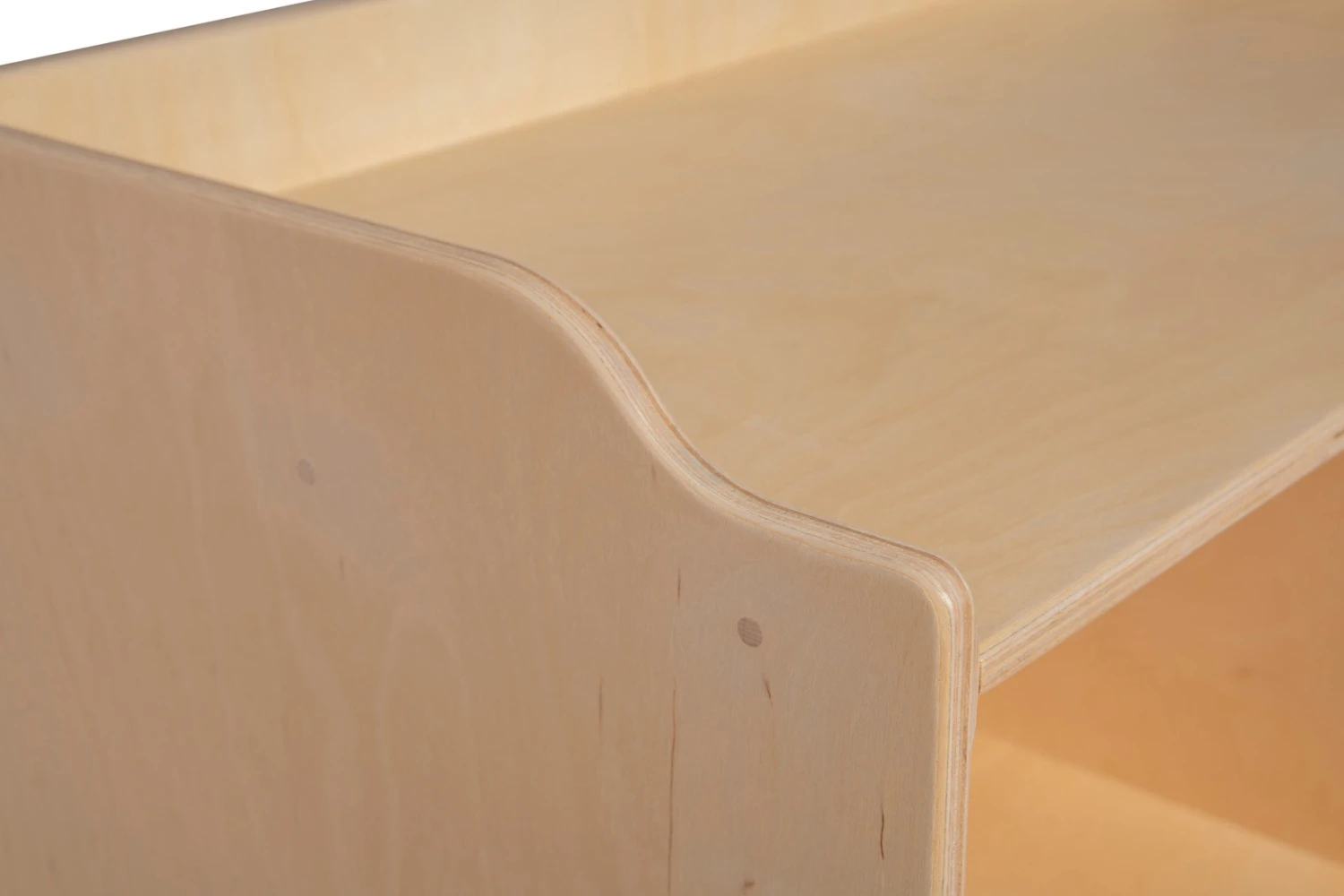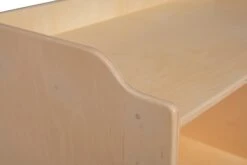 De commode bestaat uit een werkblad met fraai afgeronde hoeken, waar een aankleedkussen op past.